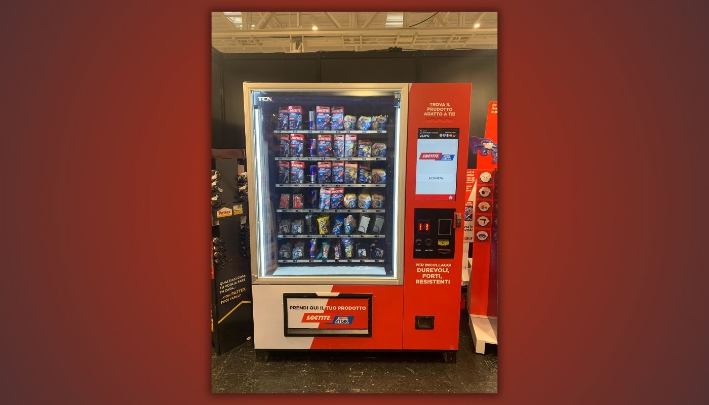 Una Smart Vending Machine Loctite Super Attak per ridurre il taccheggio, migliorare l’esperienza d’acquisto e portare il digitale nel punto vendita fisico.