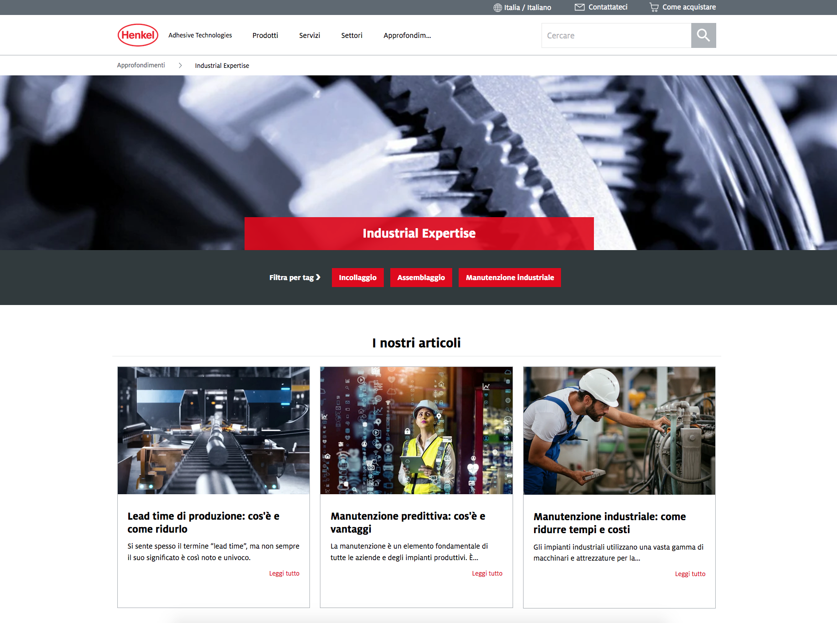 Henkel Adhesive Technologies, da sempre alla ricerca di nuovi modi per condividere con i propri utenti le migliori pratiche e le conoscenze per l’utilizzo e l’applicazione dei suoi prodotti, presenta Industrial Expertise, un nuovo blog dedicato all’incollaggio, all’assemblaggio e alla manutenzione industriale e facilmente raggiungibile dal sito ufficiale henkel-adhesives.com. Il blog si pone come vero e proprio strumento di divulgazione, inserito all'interno della sezione “Approfondimenti” del sito. Inoltre, per indirizzare al meglio il lettore nella ricerca degli argomenti, è stato appunto suddiviso in tre macro-sezioni: Incollaggio; Assemblaggio e Manutenzione Industriale. All’interno di ogni sezione è possibile trovare articoli e guide che affrontano e vanno ad approfondire gli argomenti trattati.