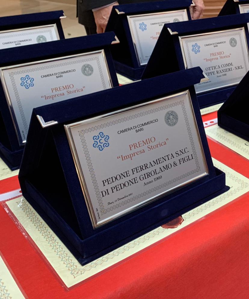 Importante riconoscimento, quello ricevuto ieri dalla Pedone Ferramenta, premiata tra le "Imprese Storiche" del territorio della Camera di Commercio di Bari. L’evento si è tenuto in mattinata nel Salone San Nicola della Camera di Commercio barese e rivolto alle imprese che svolgono sul territorio la loro attività da almeno 40 anni. Per la Pedone Ferramenta un traguardo superato con un certo anticipo, visto che nel 2020 l’azienda biscegliese ha compiuto i 60 anni di attività. Un riconoscimento al valore ed all’impegno di questi imprenditori che nel tempo hanno contribuito allo sviluppo economico del territorio caratterizzandosi per la longevità dimostrata, pur rimanendo al passo coi tempi, ma sempre nel rispetto delle tradizioni.