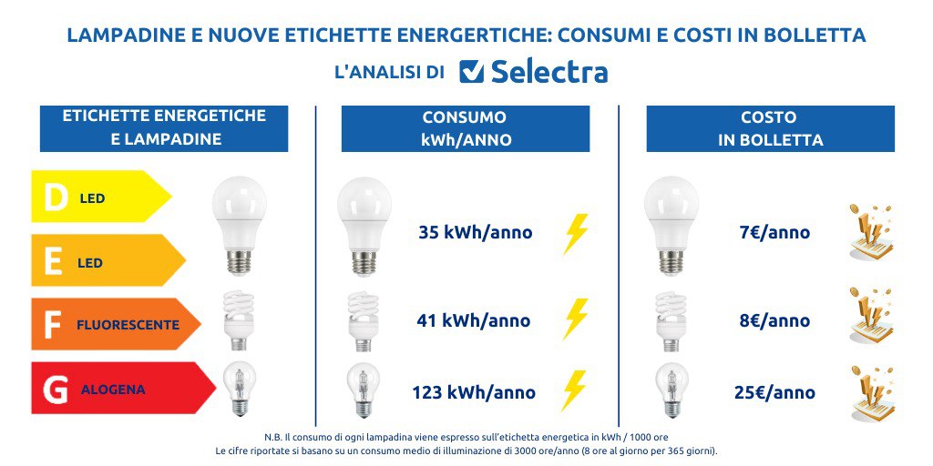 Efficienza energetica, dal 1° settembre nuove etichette per le sorgenti luminose